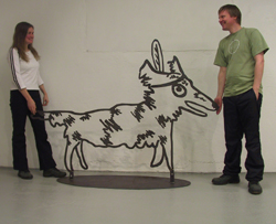 panu thusberg on materialisoinut viivan veistoksiinsa lady rapper, preeriakoira ja pyöräilijä. viiva on tärkeä peruselementti kuvataiteessa; veistoksessa käytettynä se antaa teräkselle uuden graafisen ilmeen.