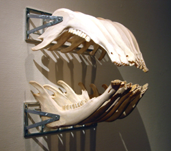 - teräkseen yhdistämäni eläinmateriaalit, lehmän sarviluut, leukaluut ja hampaat, ovat kiinni rakennelmissa syötteinä, eivät pyydystämisen kohteena, koivisto toteaa.