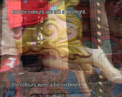 karru ei ole kuitenkaan galleriaK:n tilateoksessa vakavikko saarnaaja ja alleviivaaja. jokainen voi keksiä väreille omat kirjaimensa ja löytää lauseille oman tarkoituksen ja miettiä kappaleille oman merkityksensä.