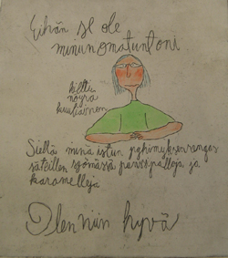 piirrokset, sarjakuvat, päiväkirjat, kirjeet, pöytälaatikkorunot, omat tarinat.